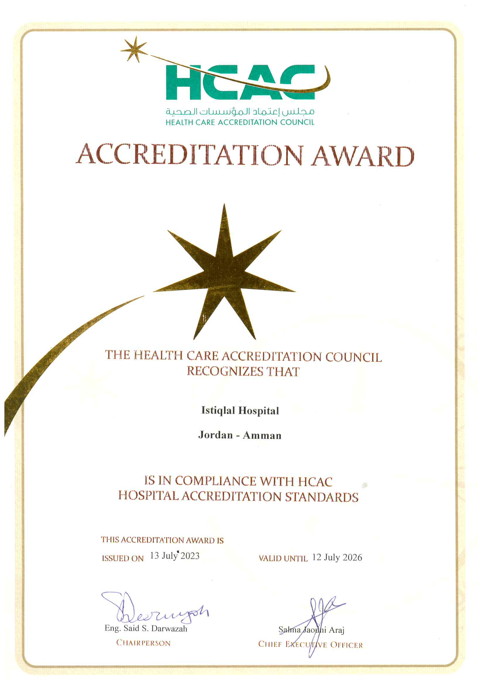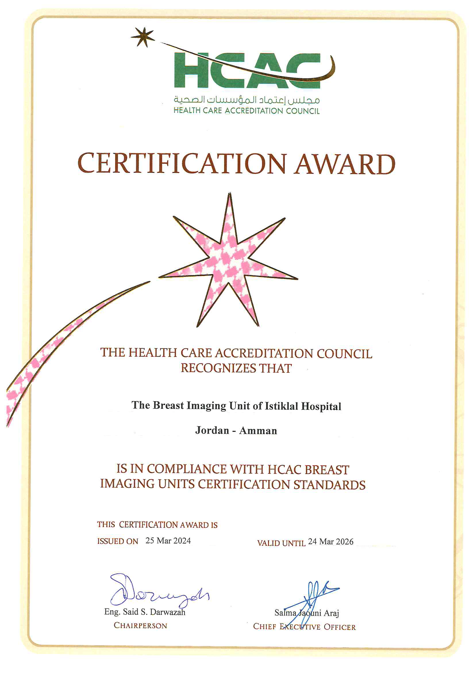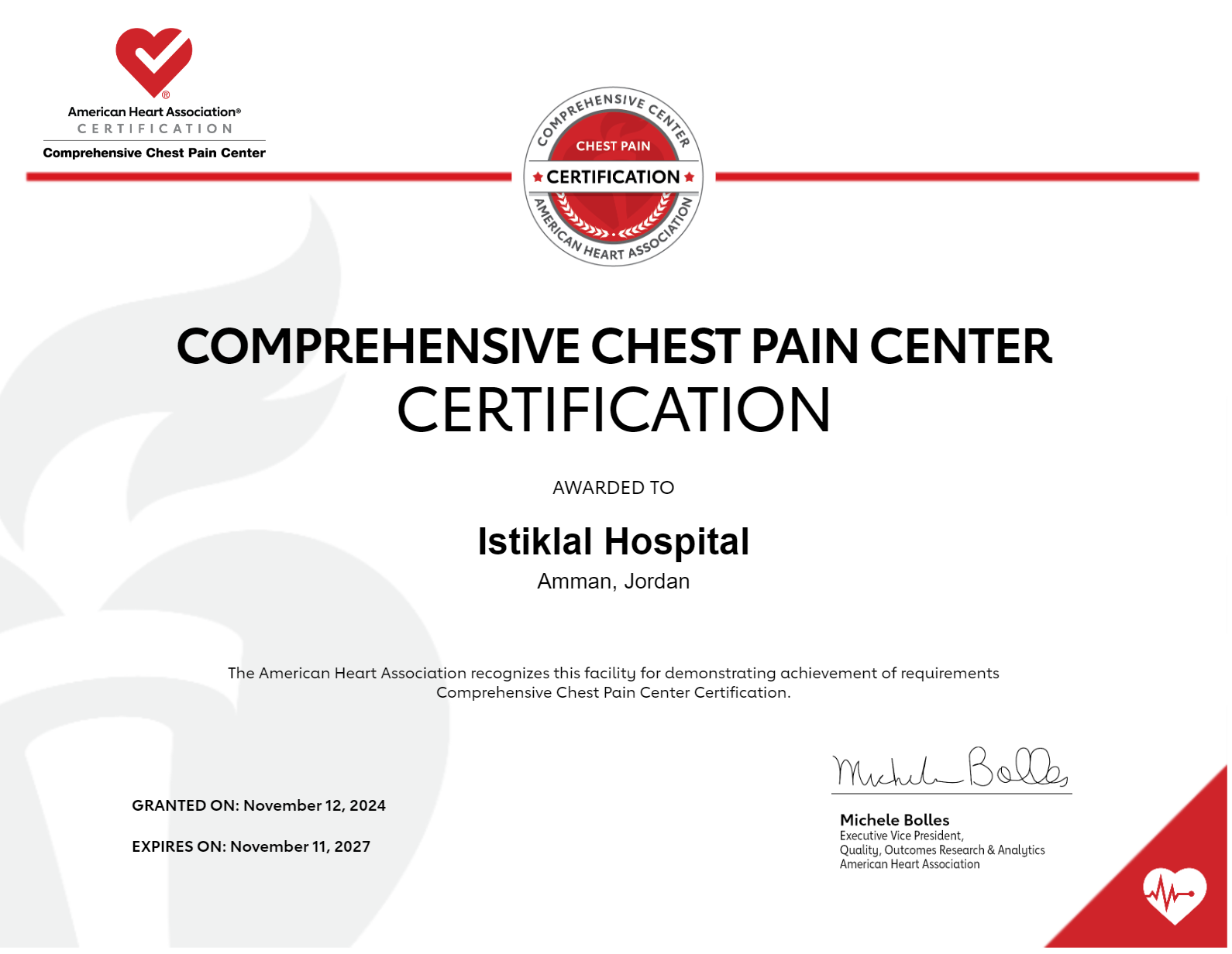 المستشفى الأول و الوحيد في الأردن المعتمد كمركز شامل لعلاج آلام الصدر