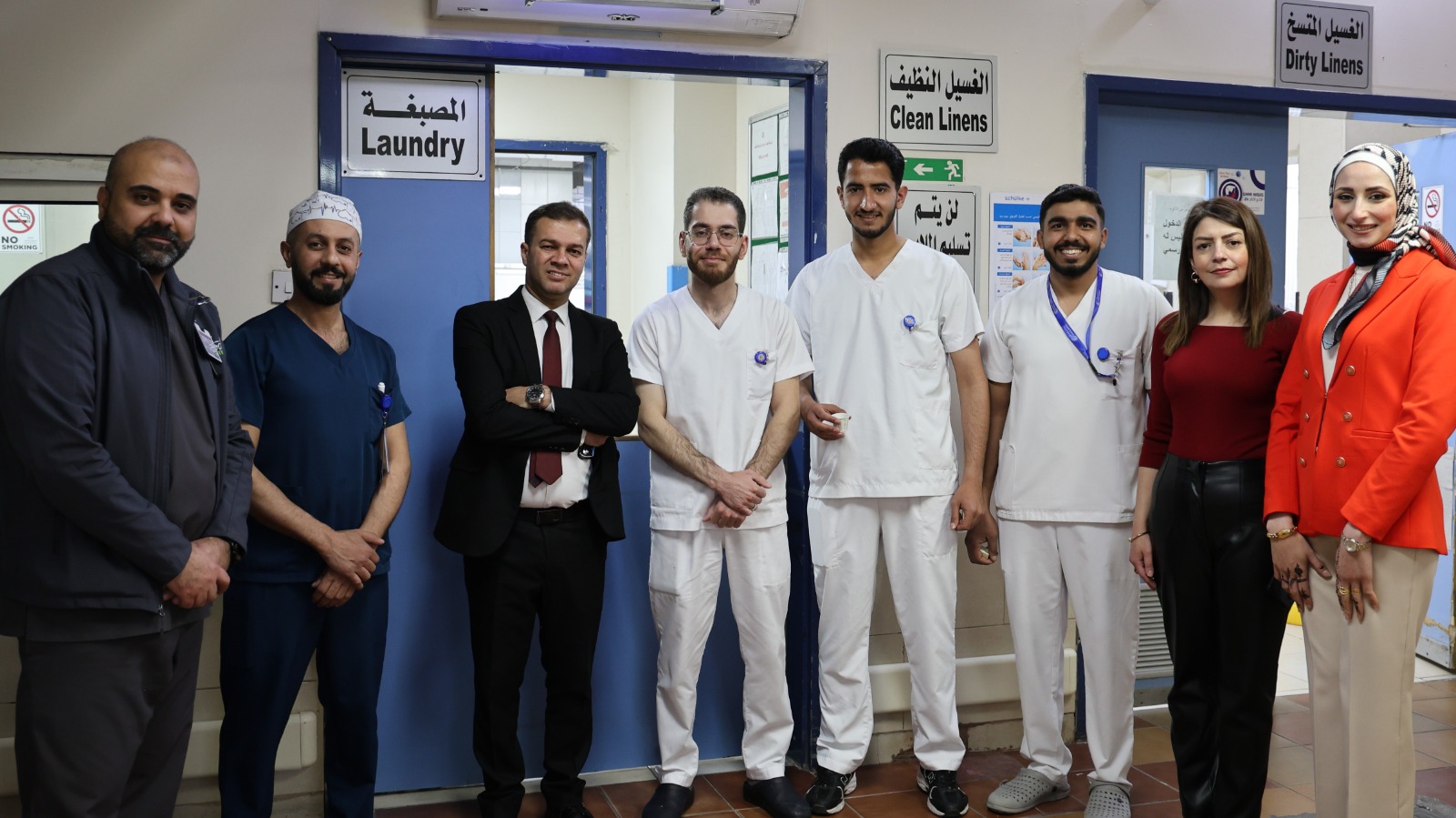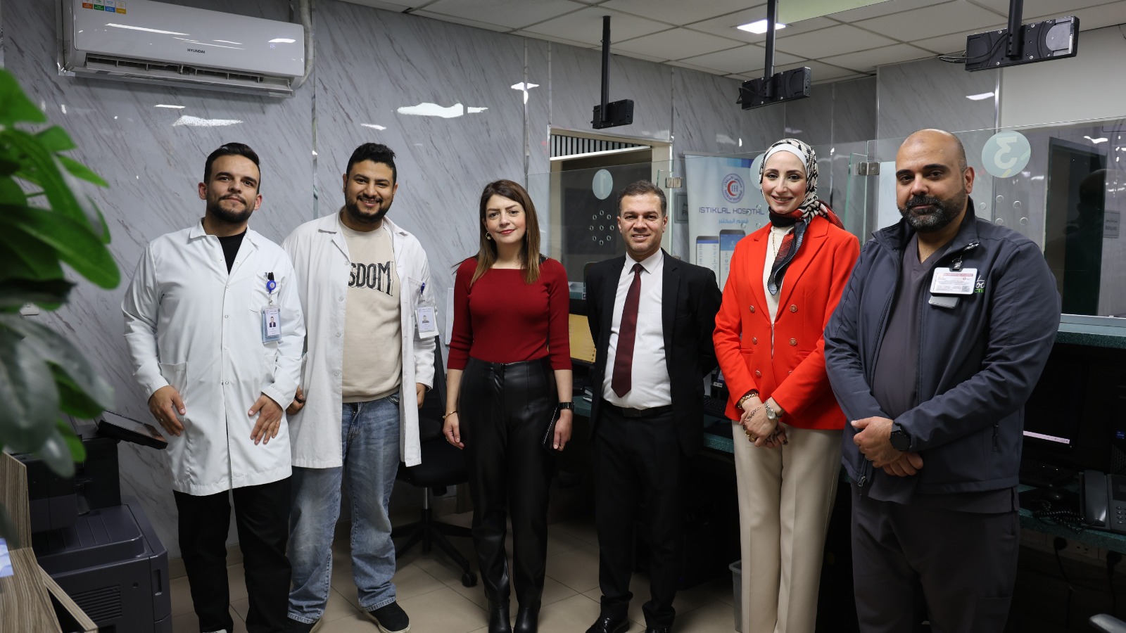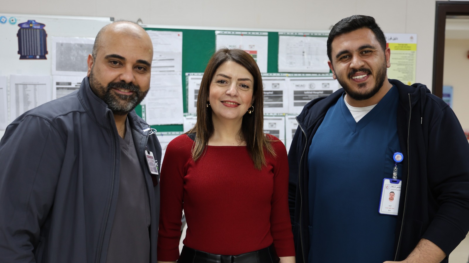 The Director of Al-Istiqlal Hospital, Dr. Moayad Omar, the Administrative Director Ms. Sarab Al-Hadidi, the Marketing and Public Relations Manager Ms. Sawsan Khattab, and the Administrative On-duty Omar Abu Naqeira extend their congratulations to all inpatients in the hospital and the staff performing their duties on the occasion of Eid Al-Fitr