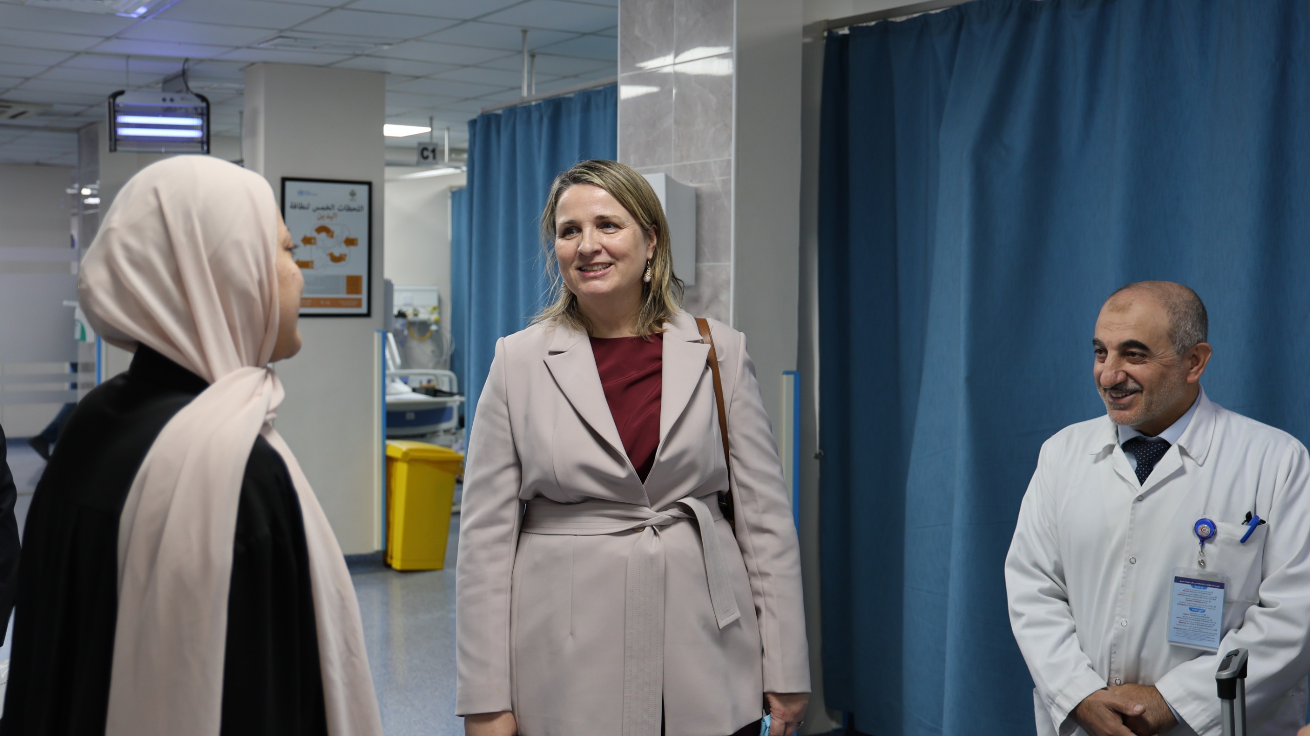 Amman – The Ambassador of the Republic of Ireland to Jordan, Marianne Bolger, visited Istiqlal Hospital to check on a number of Gazan patients receiving treatment at the hospital with support from the Irish Embassy. This visit is part of Ireland's humanitarian efforts to support the injured and sick in the Gaza Strip.