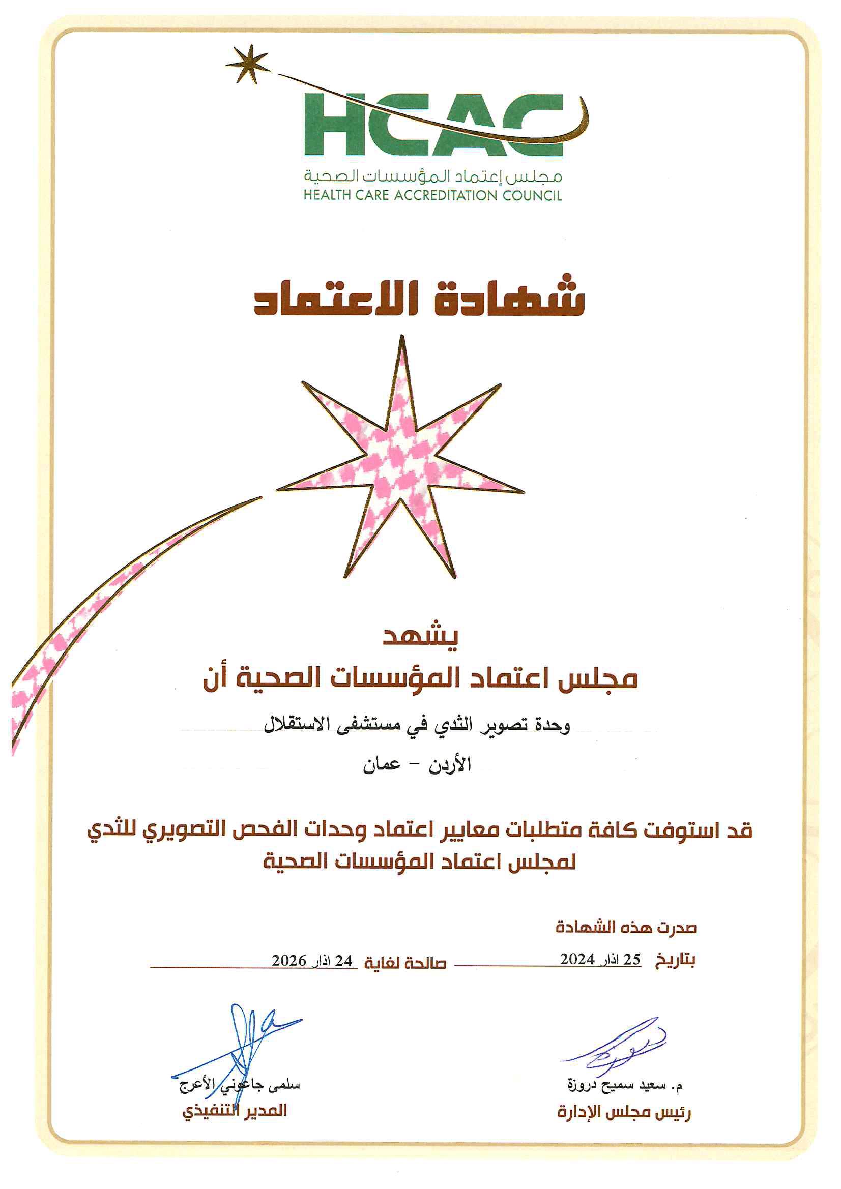 المستشفى الأول و الوحيد في الأردن المعتمد كمركز شامل لعلاج آلام الصدر
